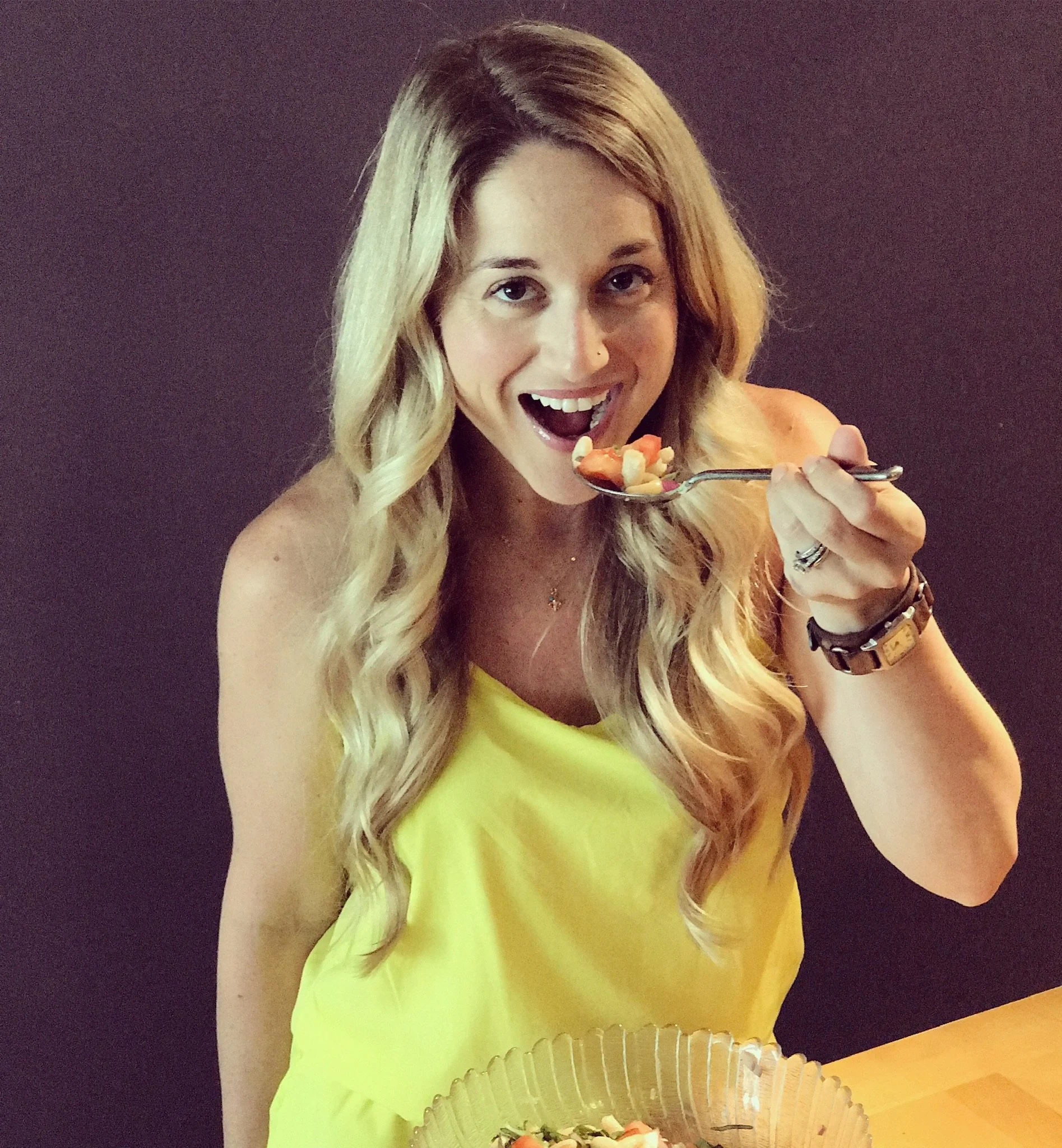 If I had to guess I’d say this tabbouleh salad is in 9 of 10 of my grocery hauls. At any given time, I likely have a container in the fridge, one in my purse, and another at the studio. I’ve eaten it in the morning with eggs on top, and i’ve eaten it for lunch and dinner with shredded chicken on top. It’s a super versatile, grain-free salad with a hefty serving of vegetables and a light citrusy taste. Some days I even grab it for a quick snack!